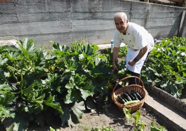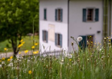 An ancient rural house that has become an example of sustainable architecture, surrounded by gree...