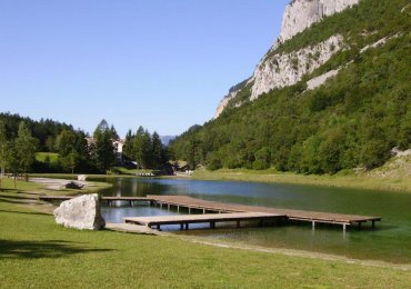 A hotel immersed in the enchanting scenery of lake nembia, in the heart of the brenta dolomites,...