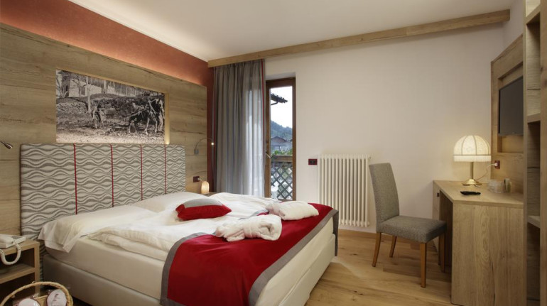 The rooms are furnished with natural materials, have private bathrooms, satellite TV and WiFI. Some rooms also have a balcony with beautiful panoramic mountain views. Breakfast is buffet style, with a wide selection of local products and zero-gauge. For moments of relaxation, do not miss the beautiful wellness center of the hotel, with swimming pool, saunas and beauty treatments.