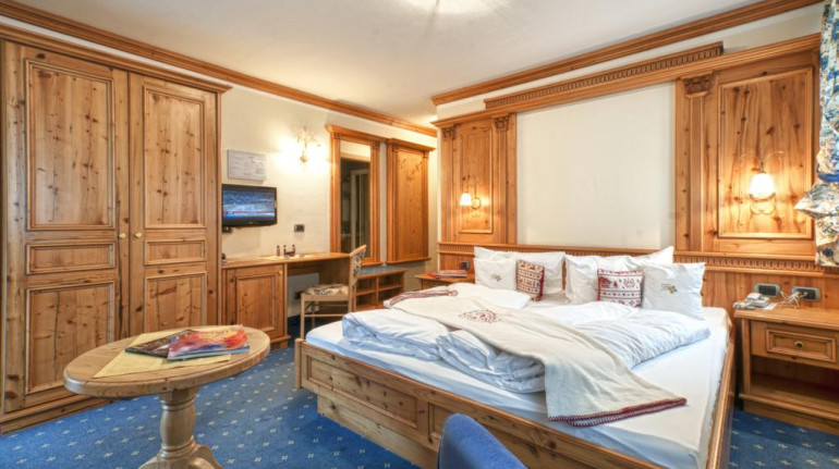It is decorated in the style mountain: the wood, the dining room, the smells, the silence, the tranquility, they are ideal for those who want to feel good. The rooms are decorated on in fir, they have wooden floor or carpet, cable internet, tv with sky gold sat tv, balcony, safe and minibar. The private bathroom has a hairdryer, make-up mirror, bathrobe and direct access to the spa.
